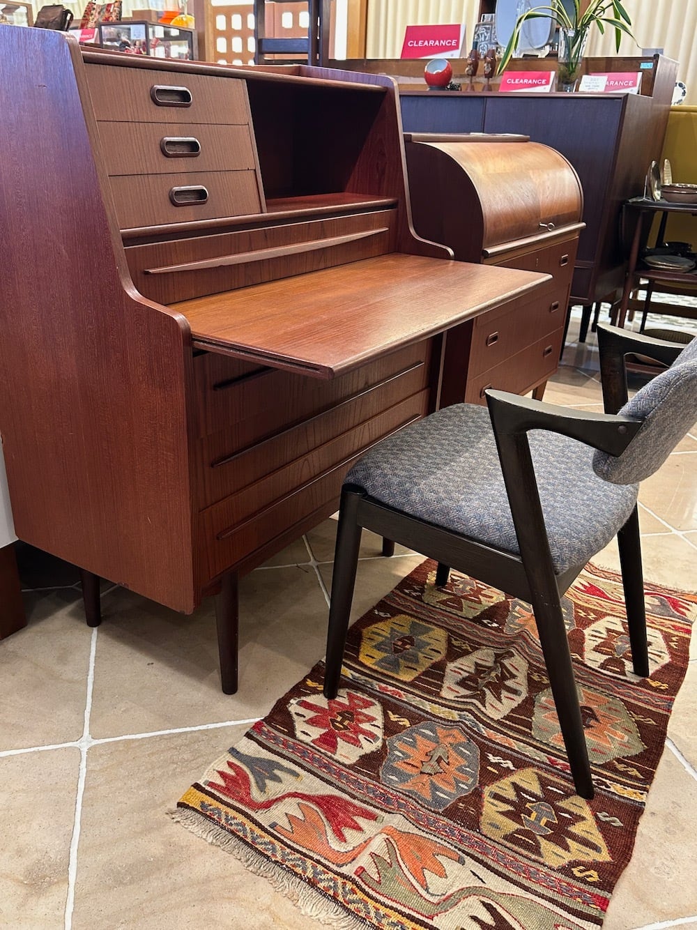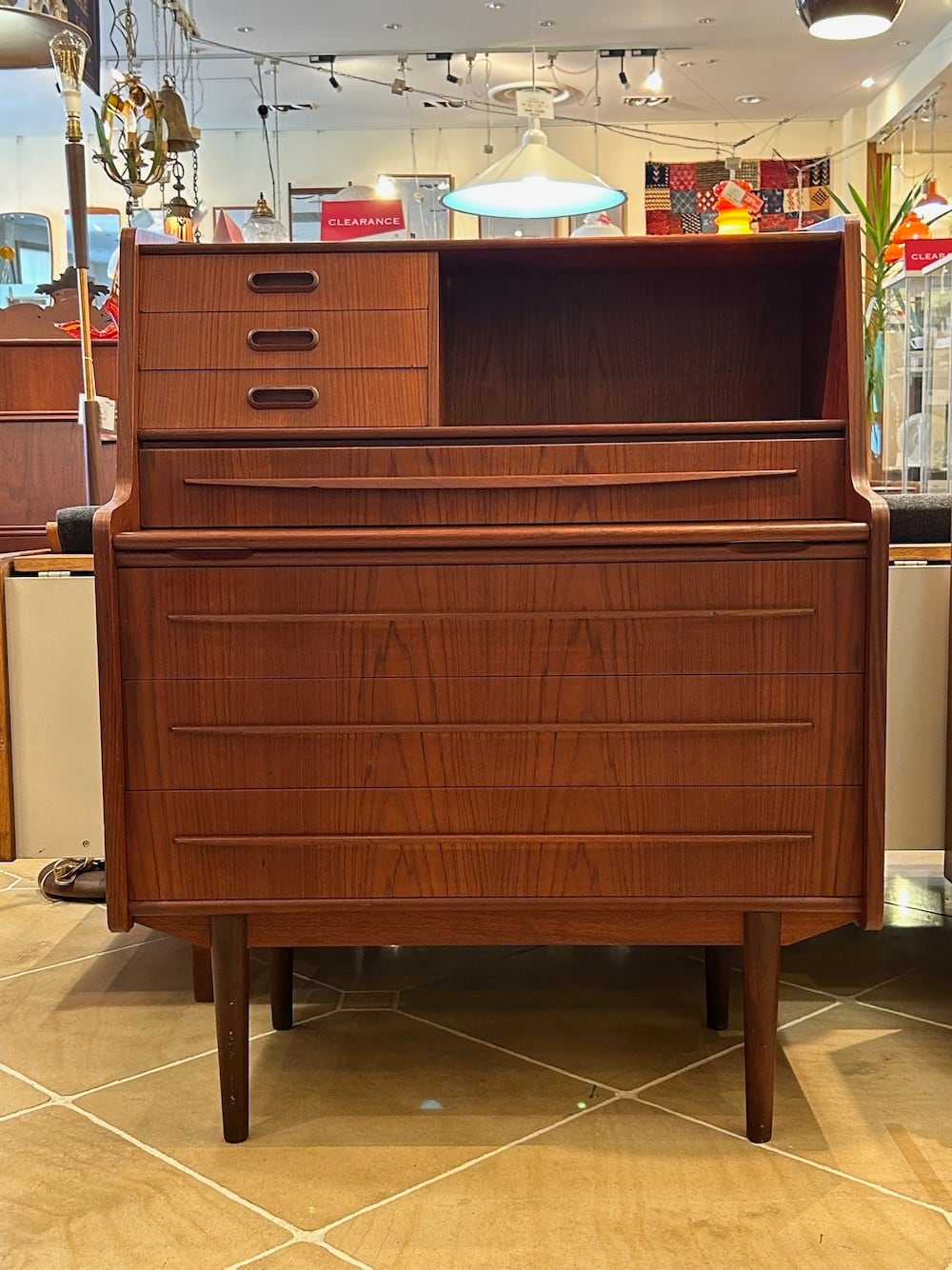 飾り棚・ドレッサー・デスク・収納チェスト、という4台分の機能を併せ持つ「ドレッシングビューロー」は、当店の1番人気の家具です。