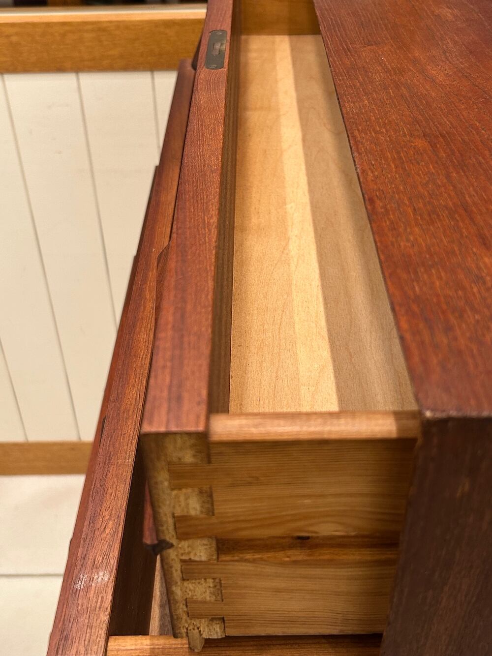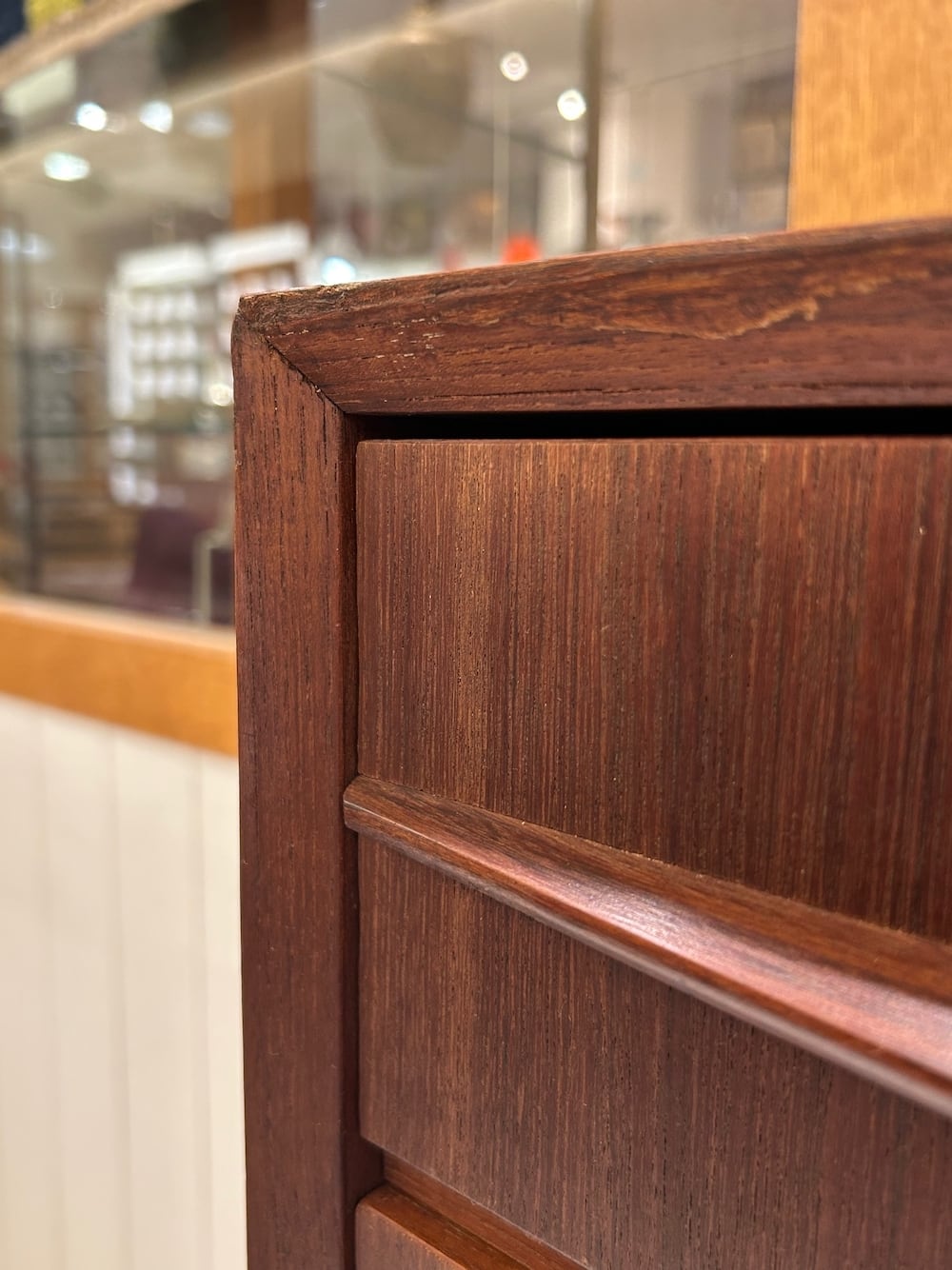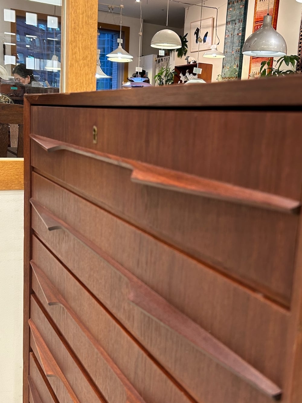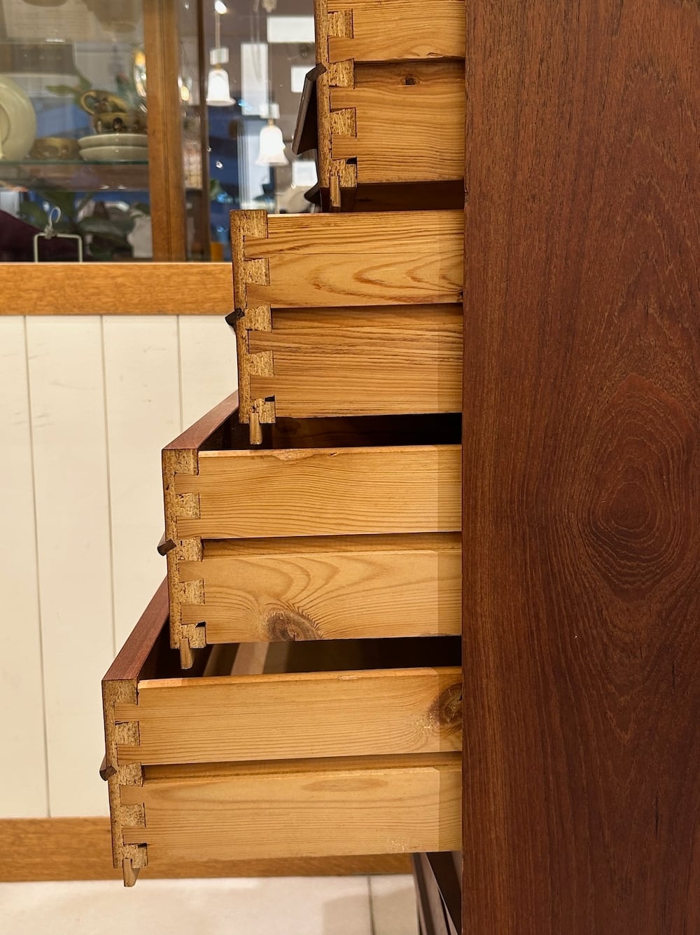 こちらは、デンマークの家具メーカー G.J. Möbler社にて製作、エッジの効いた取手デザインがアクセントです。