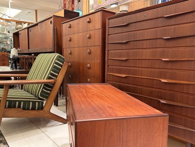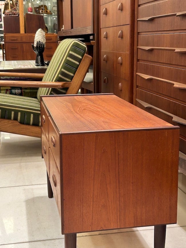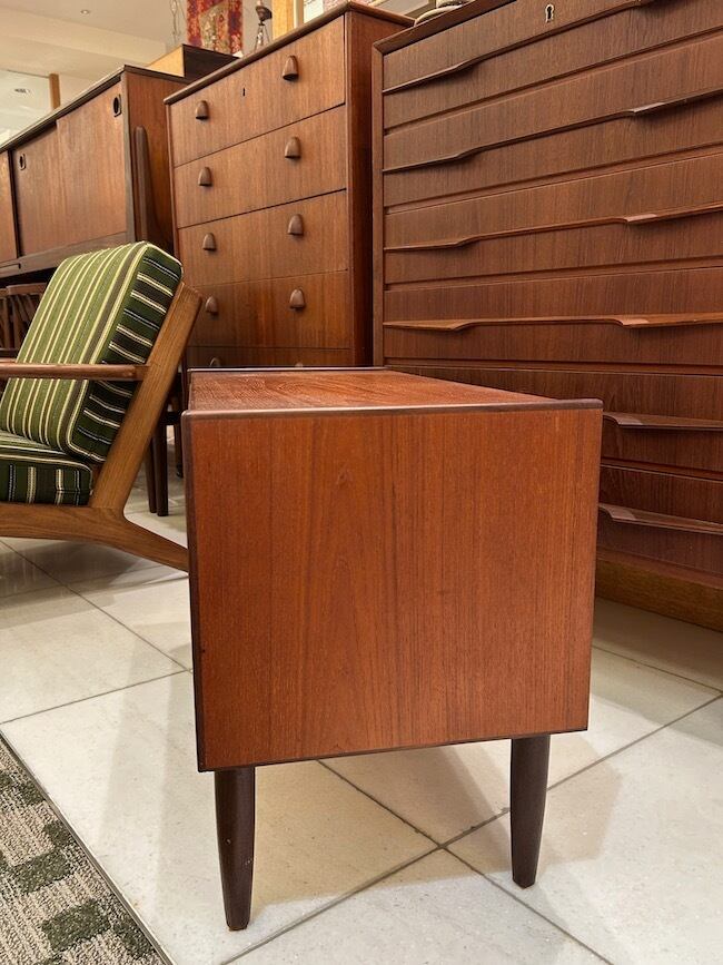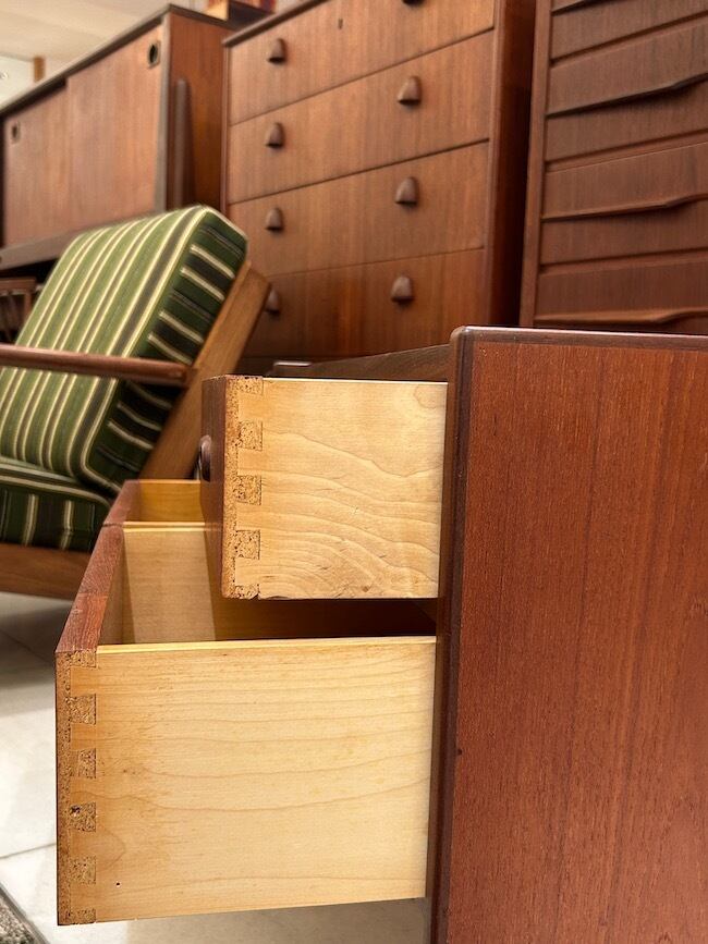 チーク材の木目が美しく、木目は縦方向に流されたデザイン。
