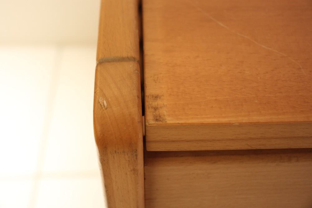 経年変化で飴色へと変化しているフレームと、当社工房にて張替えを行っているクッション部分。