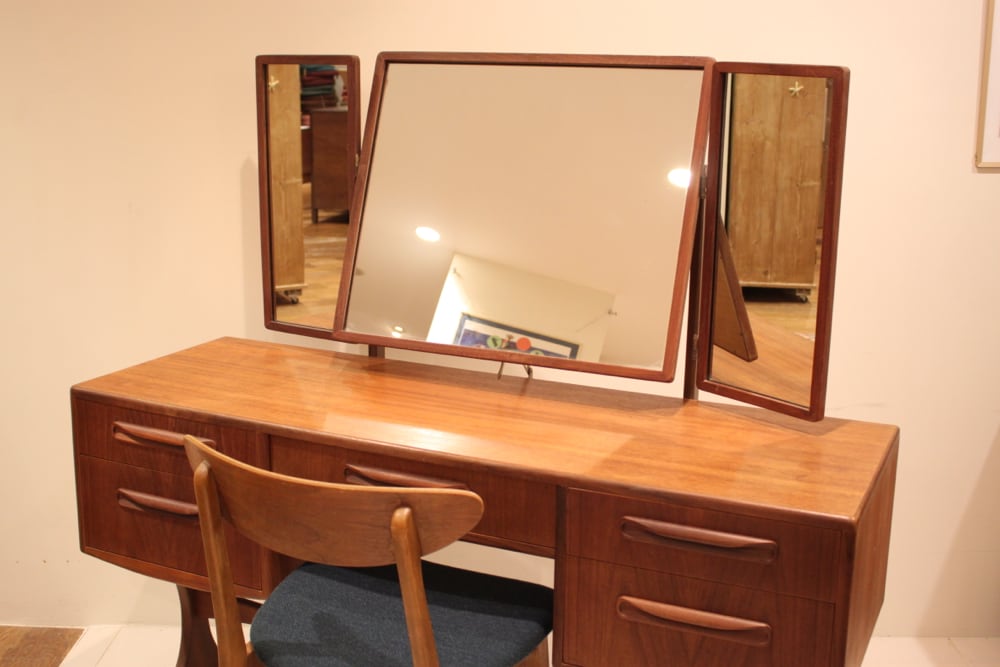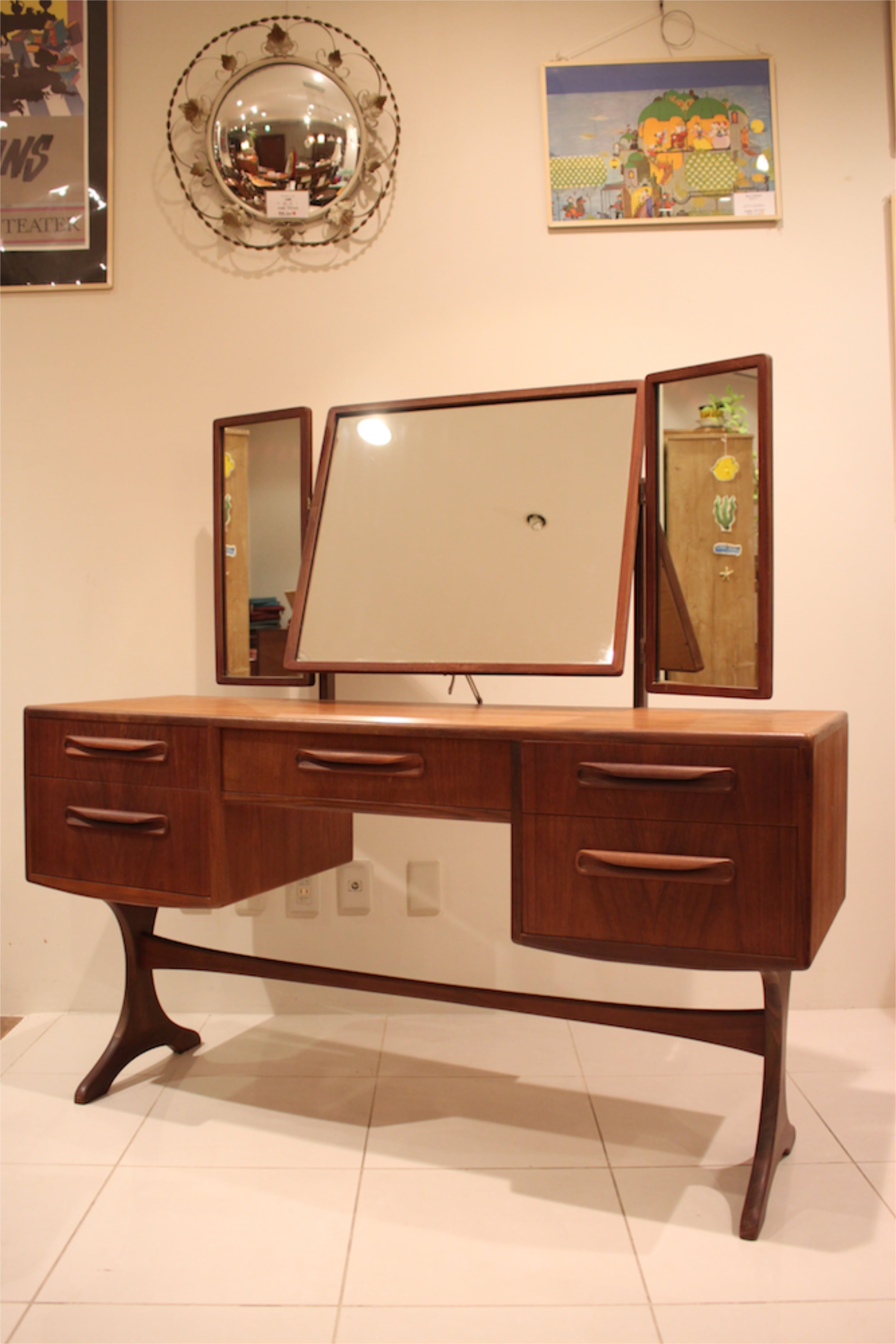 ヴィンテージのドレッサーは、鏡が収納できるチェストタイプのものや、小型のデザインなどもございますが、しっかりとドレッサー使いされたい方にはお勧めな家具です。