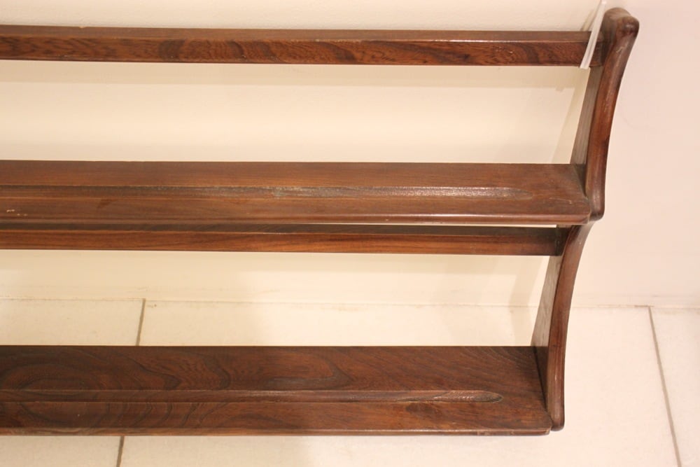 棚板には溝が彫り込まれていますので、お皿の他、写真やポストカードの飾り棚としても使い易いデザインです。