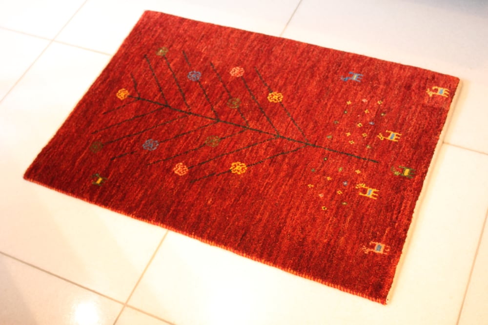 ギャッベとは毛足の長い絨毯のことを指し、羊の毛を刈り取って、手で紡いで、草木で染めて、手で織った絨毯です。