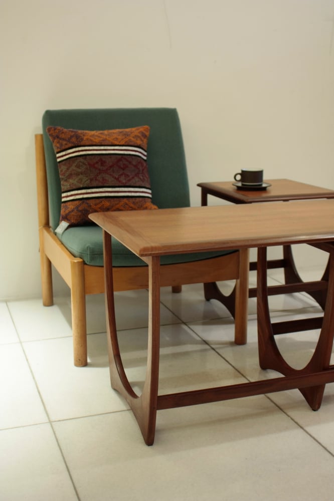 入れ子式テーブルの珍しいデザイン、3点セットのセンターテーブル。