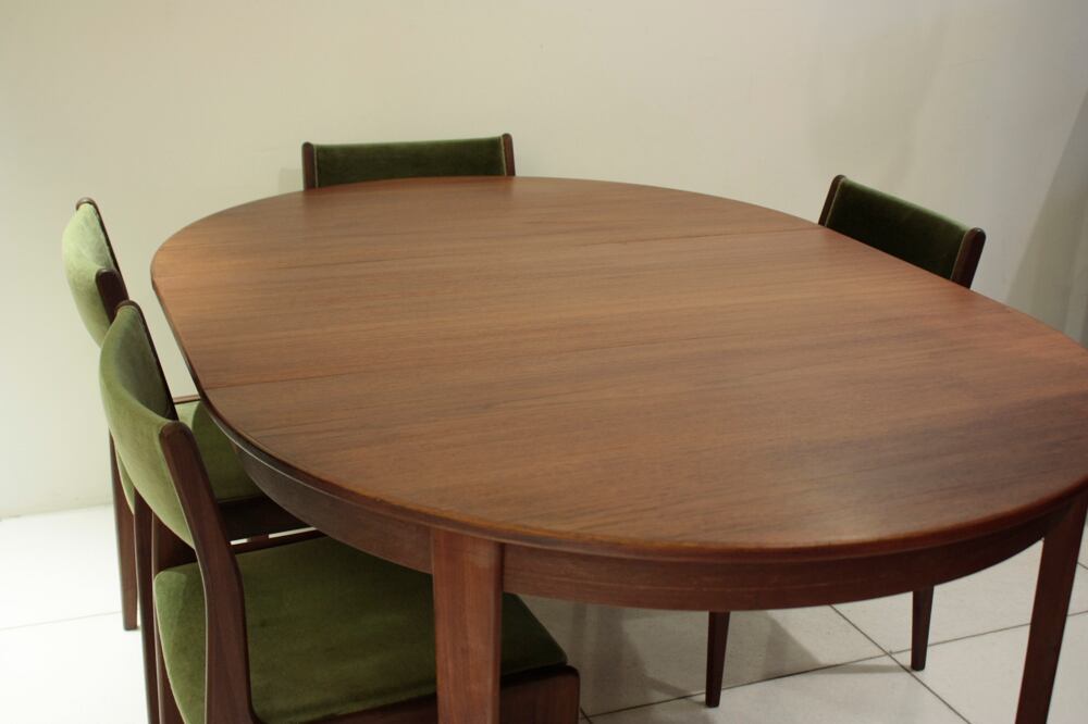 デンマーク製、チーク材の円形エクステンションテーブル。