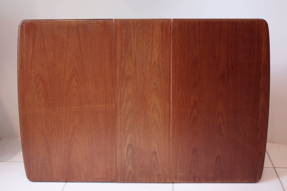折りたたみ式のバタフライテーブルは、便利ではあっても、その安定感に懸念を示される方も多いかと思います。こちらは、天板を脚で支えるデザイン故、片側だけでも両サイドを広げましても安定感があります。