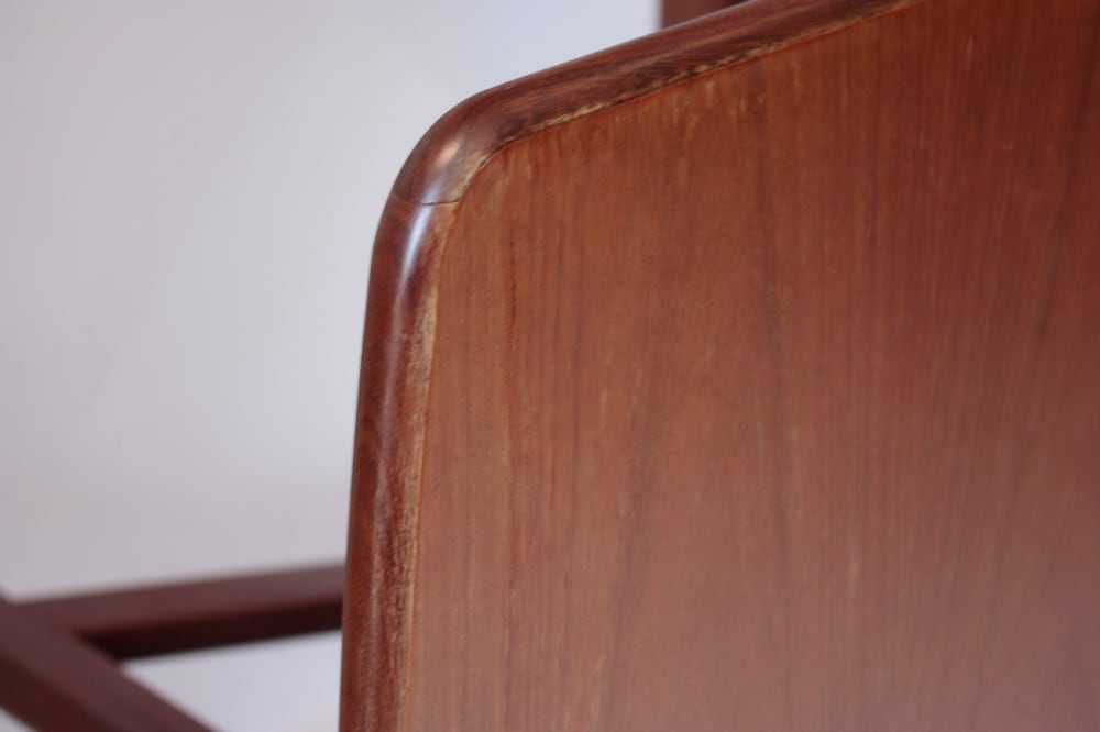 こちらは、天板の突き板にやや水浮きが見られるのと、突き板の剥がれが見られるため、セール価格にてご提供。