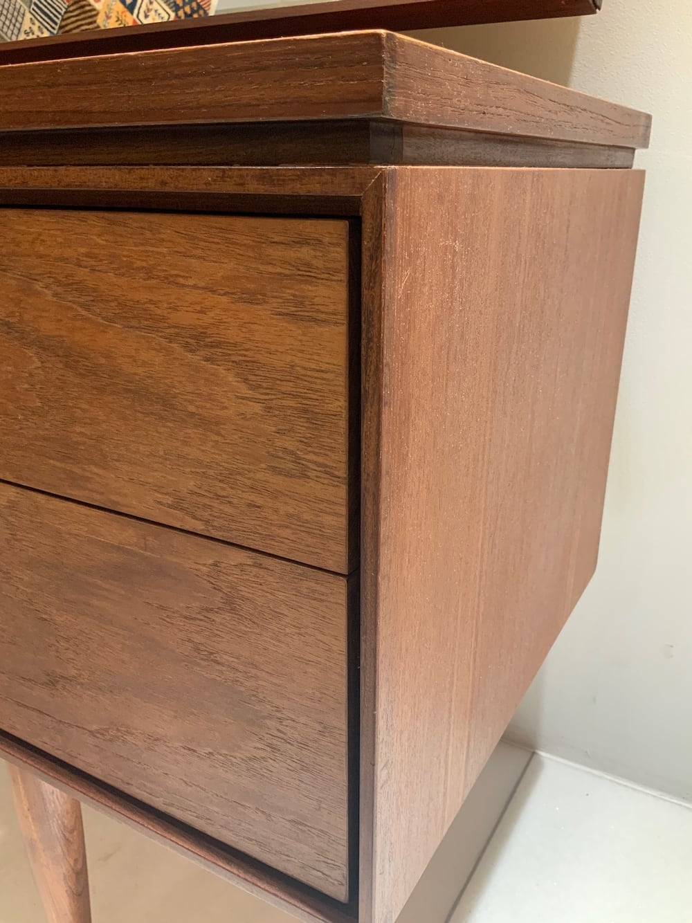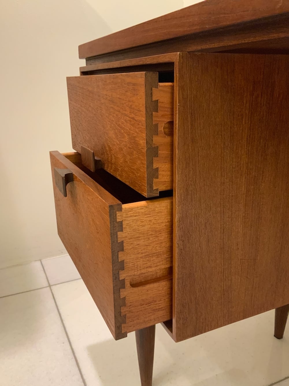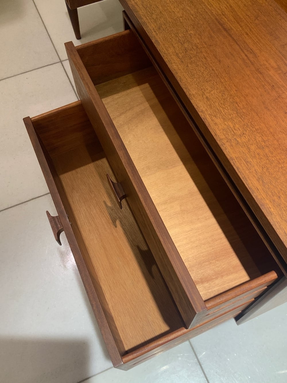 引き出しの底板に、G-PLAN社とIb Kofod Larsen (イプ・コフォード・ラーセン)の焼印があり、証明にもなります。