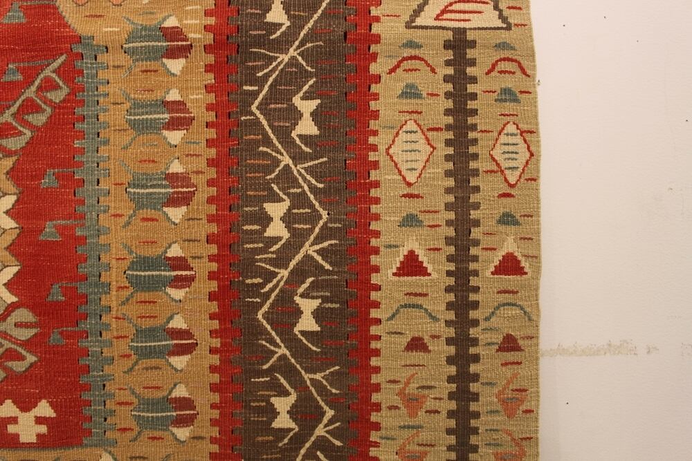 3人がけソファの前にも合わせていただける、リビングサイズのキリムです。